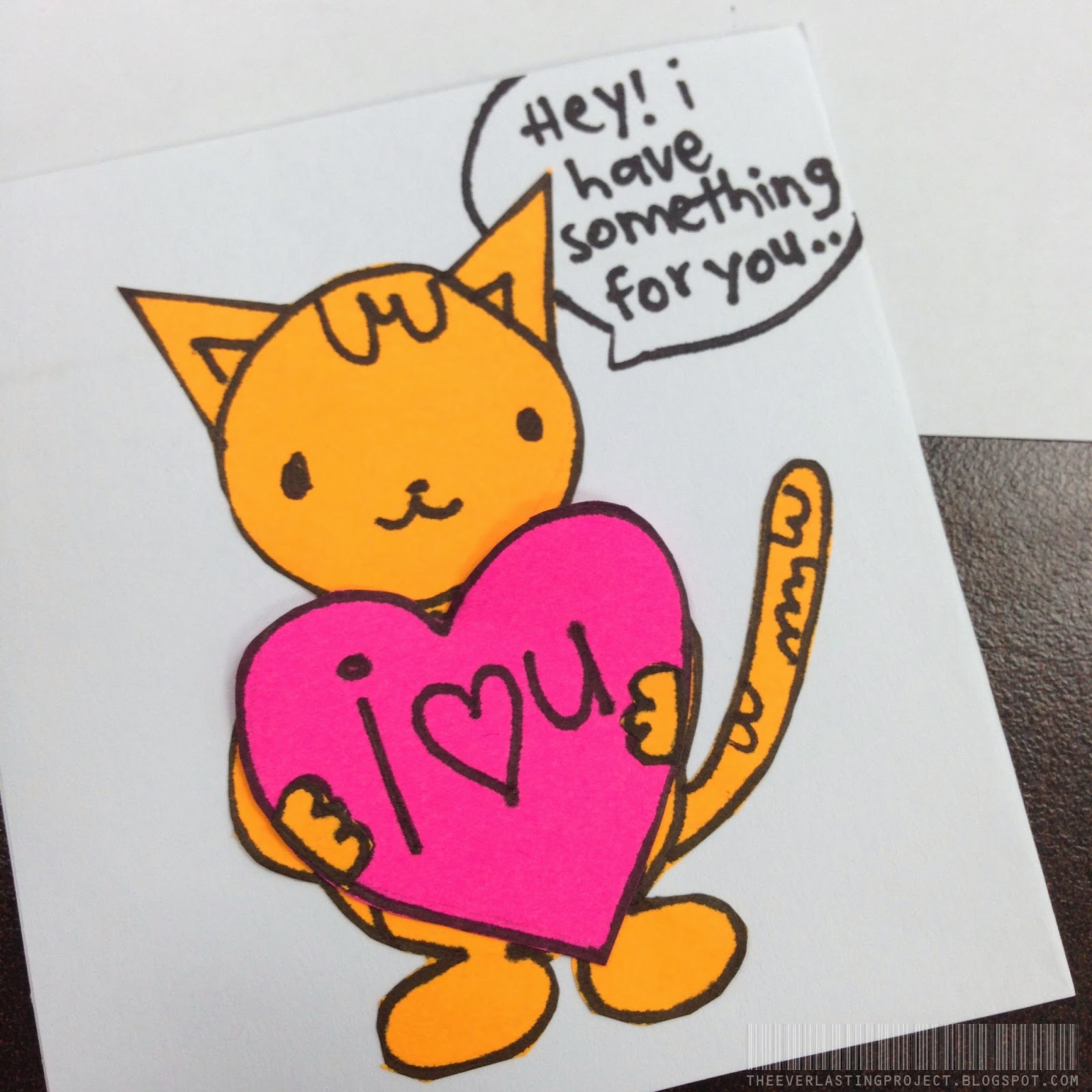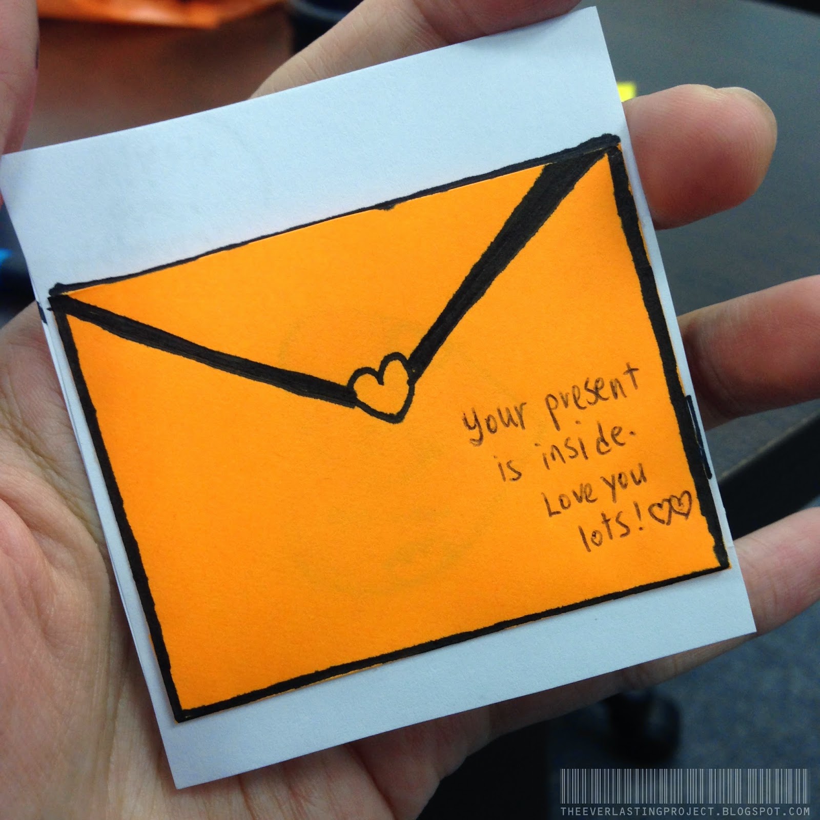 Here you can faintly see that i have slotted my heart inside the 'envelope' through the top. Write a mini note somewhere so that your partner will know that there's a surprise inside! You can also write a letter and slot it in together. Or throw in some stickers,etc. if your friend/partner loves them.