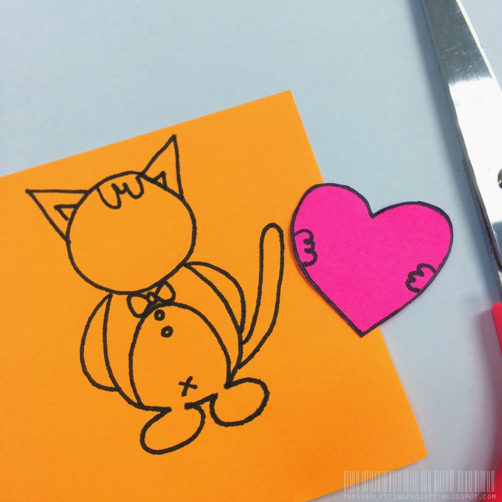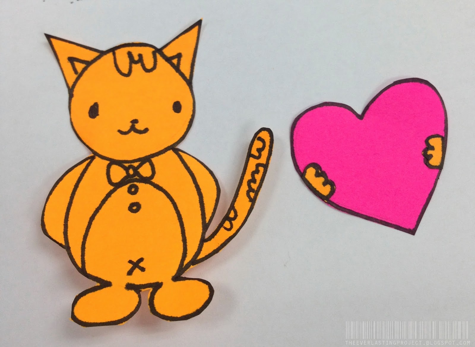 Trace out the paws using the leftover coloured paper and cut them out as well. Glue them in place over the heart.