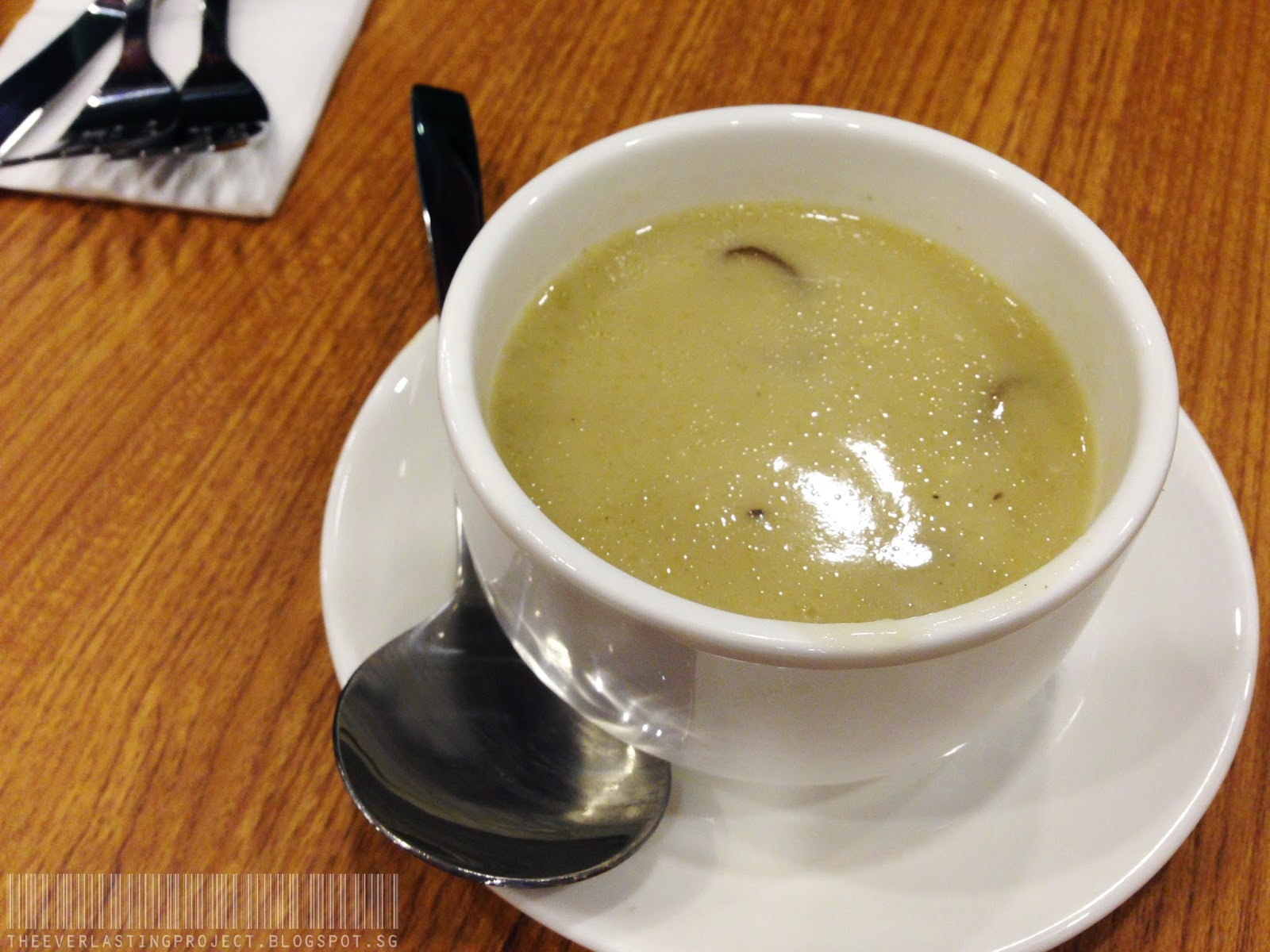 Our mushroom soup arrived first. It somehow tasted a little like Mee Soto soup for me. :D Maybe I've got weird taste buds but the soup wasn't bad. Slightly oily and watery though.