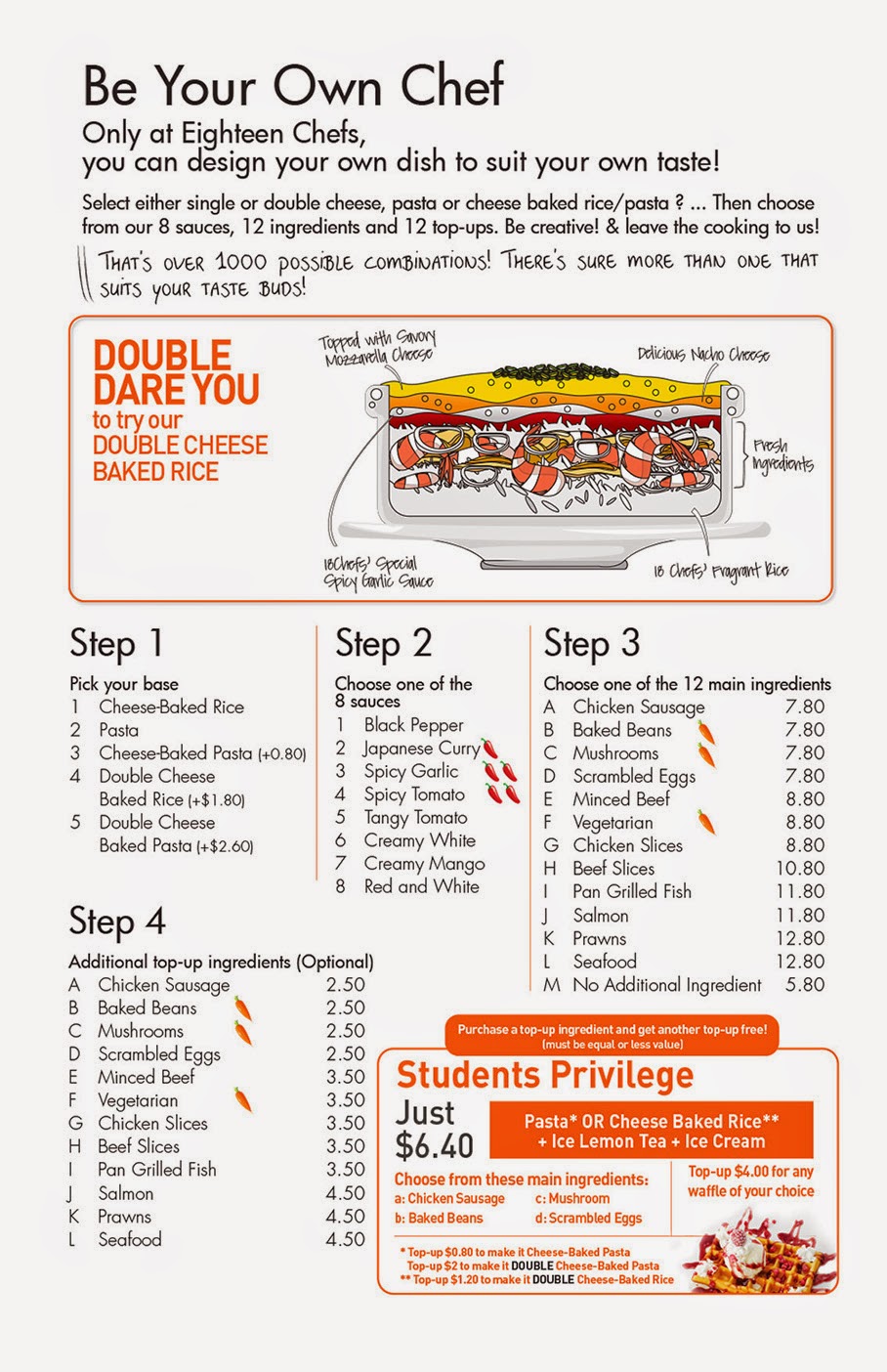 We have frequented Eighteen Chef's outlet at Tiong Bahru in the past, but the outlet is closed for now. Not to worry, they have a total of 8 outlets in Singapore (CLICK HERE to view their other locations)