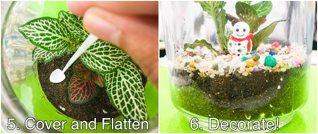 The next step is simple - DECORATE! We were given colourful decorative pebbles and a mini deco item each. And then it's done! It's so simple right?